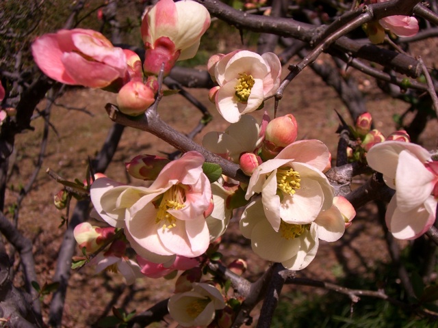 写真はボケの花です.小さい頃住んでいたお家の庭にはボケの木があって,それは赤(というか緋というか……)い花だったのですが,公園で見かけた花は白とピンク.赤の花も勿論ありましたが,自分的にちょっと珍しかったので撮ってきました.