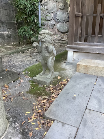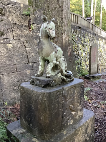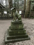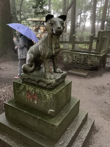 三峯神社の鳥居が工事中だったので,その手前のお犬様も撮りましたがちょっとかっちょ悪い.本殿の前のご神木の後ろにいたお犬様は苔むしていて雰囲気がありました.