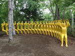 入館のチケットもこれの写真でした.斜面に作品が点在しているので,こちらも足腰注意ですよ.なんせ階段とかない,本当にただの斜面という場所もありますからね.この時は雨が止んでいて,足元はまぁ大丈夫だったのでよかったですが.ちゃんと戯れた写真もありますが,こちらには作品だけ.「椅子になって休もう」って,最初の人(?)は空気椅子ですけどね!