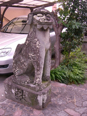 泊まったホテルの近くに偶然おかしな狛犬を発見して大興奮.