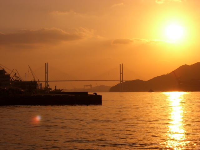 日付は前後しますが,長崎の港は昔とだいぶ変わりました.綺麗な公園になっていて,犬を散歩させている人がたくさんいました.そして女神大橋と夕日を写真に収め,釣りをしている人の釣果を見物したり.