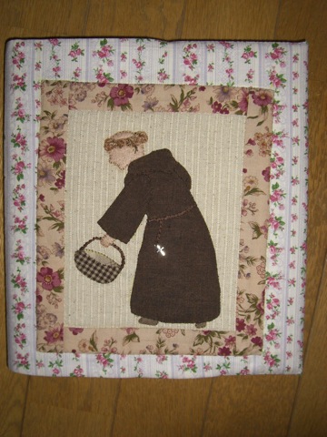 前にボンネット・スーを縫っていたの知っていたので,ボンネットじゃないけどこれいけんじゃね? とデザインは私担当です.トンスラだから髪は複雑じゃないし! 修道服も複雑じゃないし! そして出来上がった表紙では,薬草摘んで籠に入れているイメージのカドフェル! ずんぐりした感じがいいです!