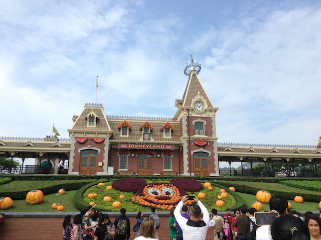 香港ディズニーはハロウィンの時期だからこそのチョイスだったので,ゲートからハロウィンでジャックとゼロとブギー仕様になっていまして,「おいらのipadが火を噴くぜ」という写真撮影スポットに.